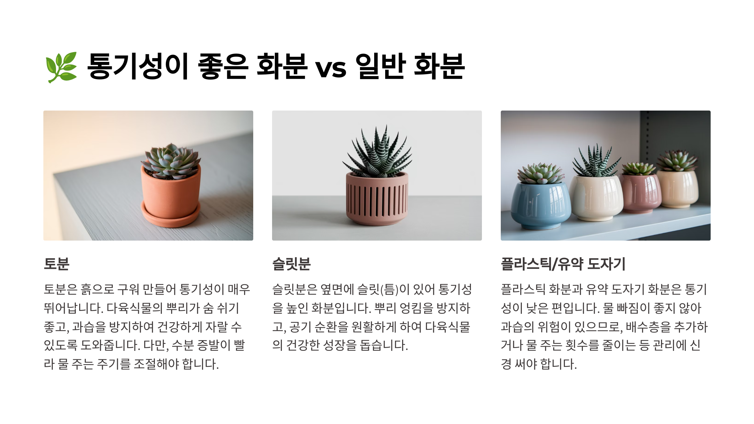 다음은 **통기성이 좋은 화분과 일반 화분의 차이점**을 알아볼까요? 🌿
