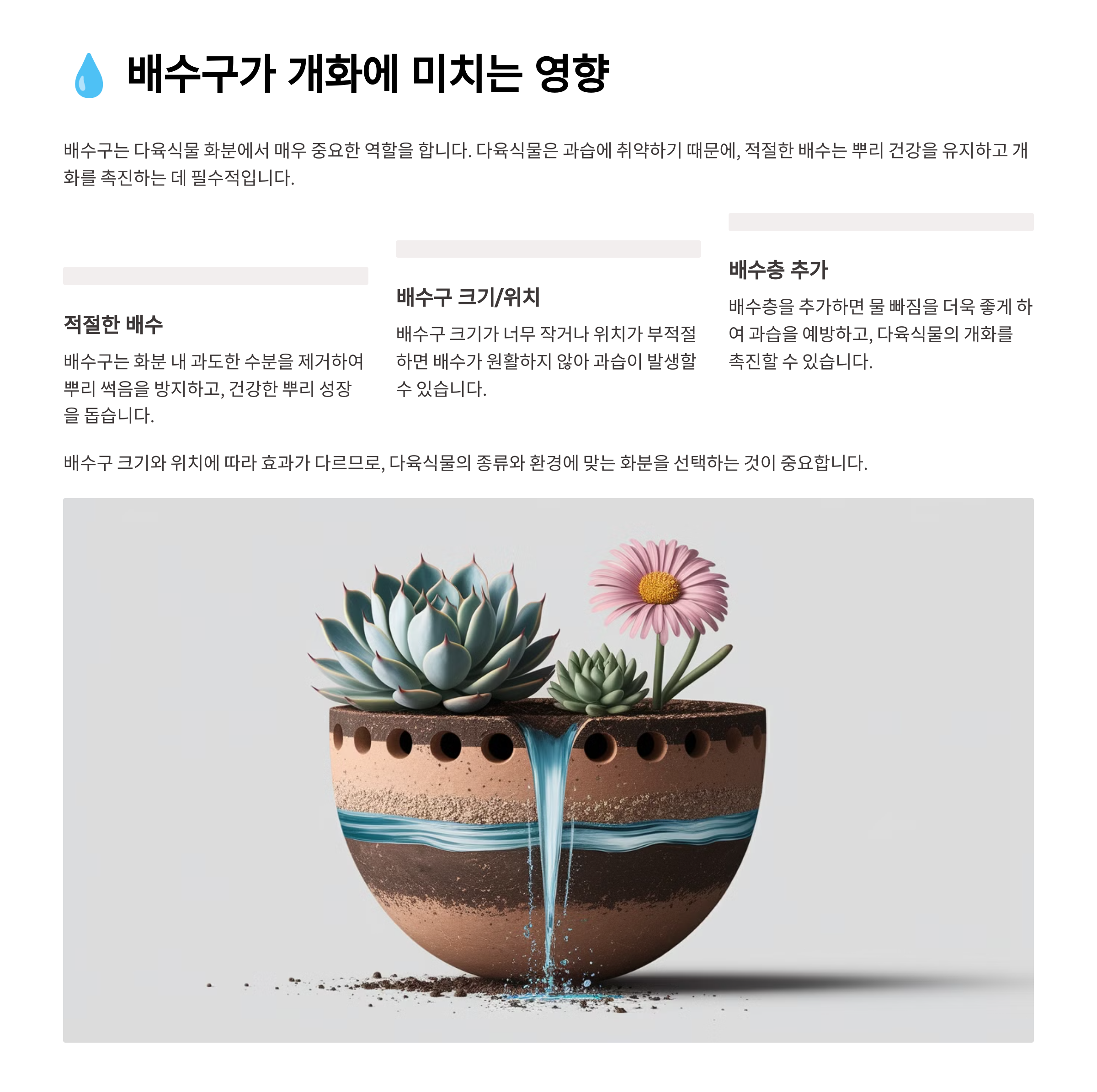 다음은 **배수구가 개화에 미치는 영향**을 알아볼까요? 💧