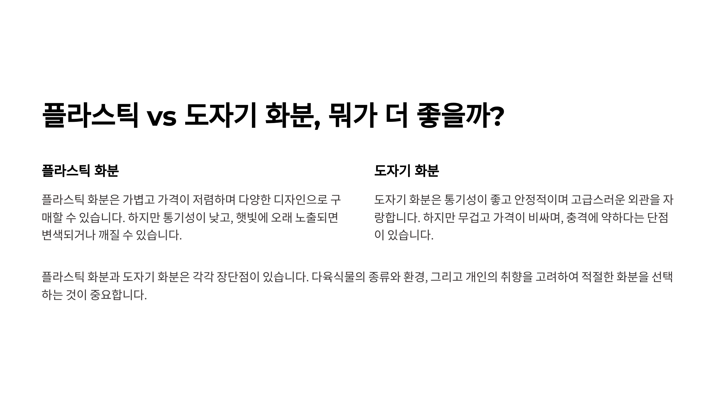 다음은 **플라스틱 vs 도자기 화분 비교**를 알아볼까요? 📍