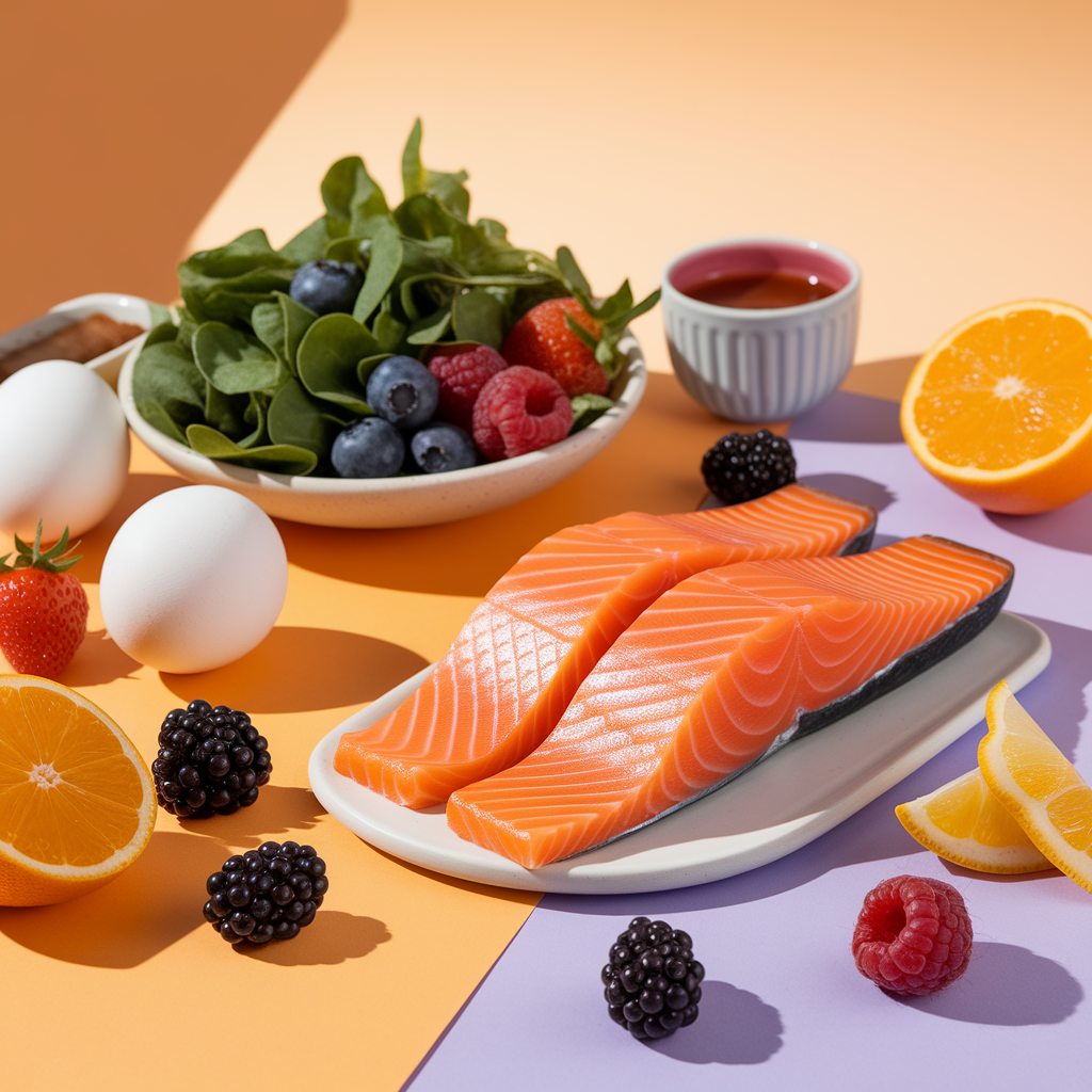 A1. 콜라겐 합성을 돕는 비타민 C가 풍부한 음식(오렌지, 키위, 파프리카)과 단백질(닭가슴살, 계란, 생선), 그리고 오메가3 지방산(연어, 고등어, 아보카도)을 꾸준히 섭취하는 것이 좋아요.