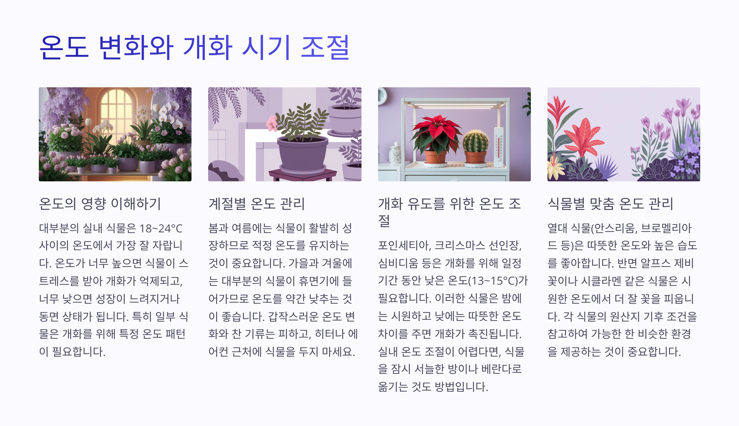 | 18~25℃ | 최적의 성장 환경 | 🌺 꽃이 잘 핌 |