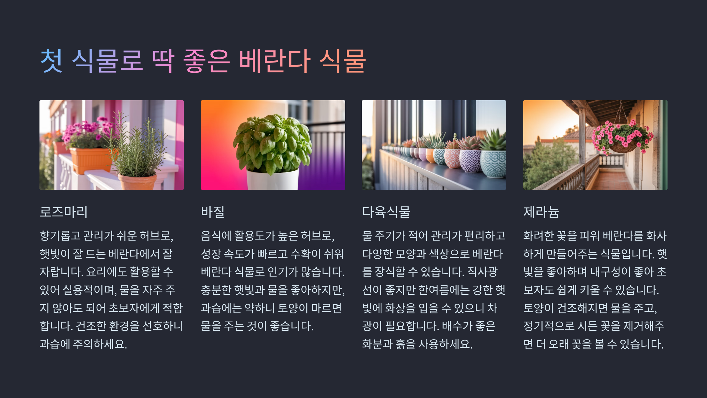 이 식물들은 **관리 부담이 적고, 베란다에서도 잘 자라서 초보자에게 강력 추천해요!** 🌿 특히 **스투키와 산세베리아**는 **거의 방치해도 잘 자라서 첫 식물로 딱이에요!** 😊