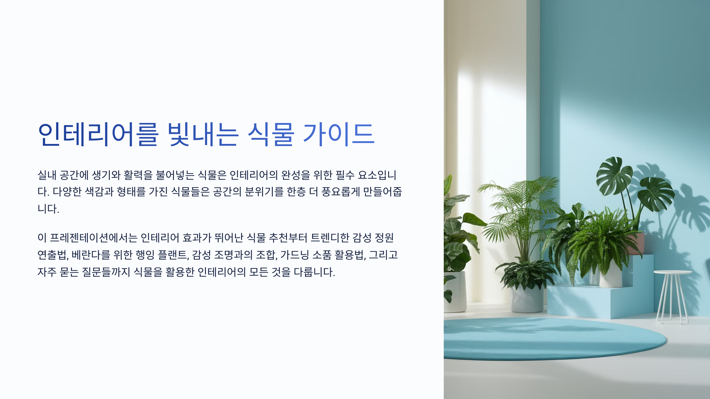 | 조명 타입 | 추천 식물 | 연출 효과 |