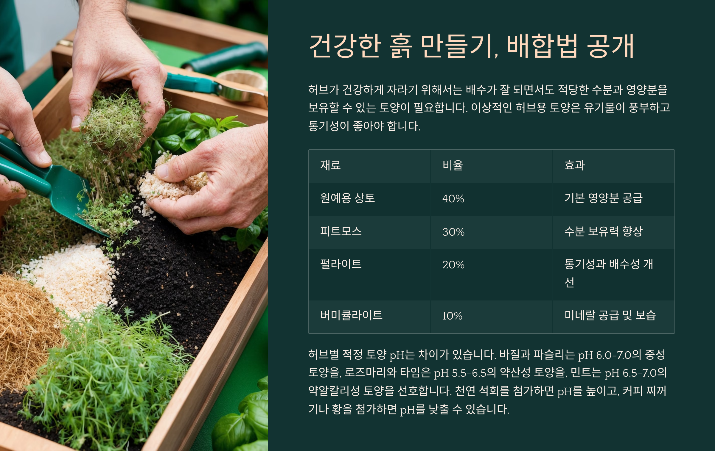이제 최적의 흙 배합법을 알았으니, 직접 만들어 건강한 허브를 키워보세요! 🌱💚