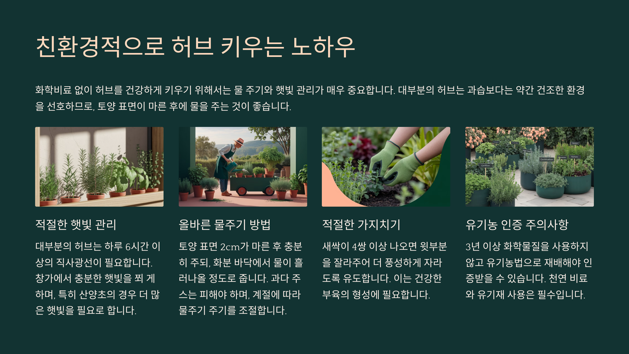 친환경적으로 허브를 키우는 건 자연에도 좋고, 우리 건강에도 좋은 선택이에요! 😊