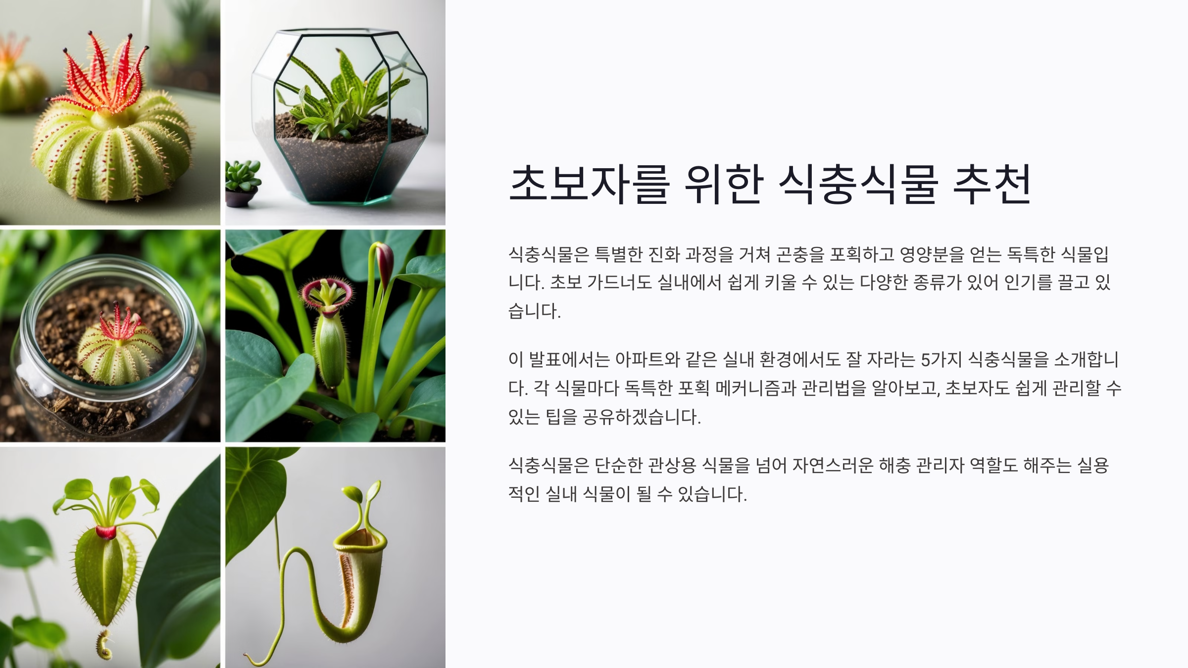 식충식물은 신기하지만 왠지 관리가 어렵다고 느껴질 수 있어요. 하지만 사실 몇 가지 기본만 지키면 초보자도 충분히 멋지게 키울 수 있답니다.