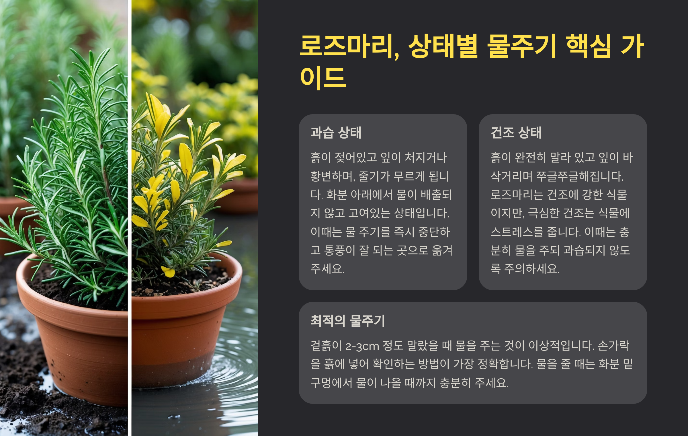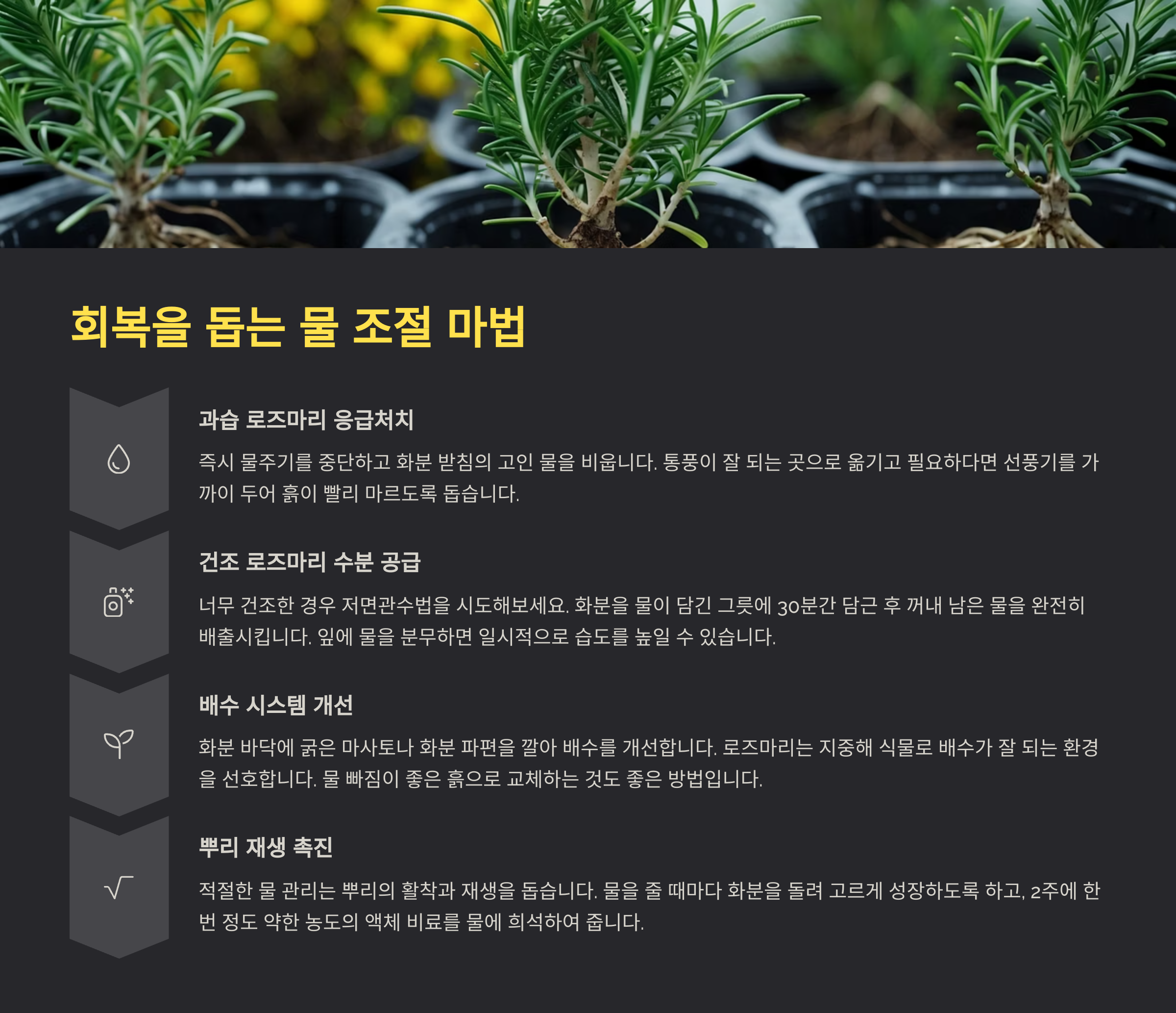 그럼 로즈마리의 생명을 되찾아줄 수 있는 마지막 물주기 전략, 지금부터 시작해볼게요! 🆘