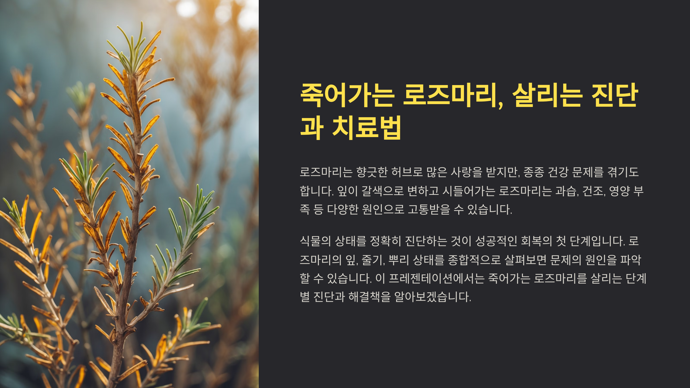 로즈마리를 키우다 보면 갑자기 잎이 축 늘어지고, 갈색으로 마르면서 '혹시 죽는 건 아닐까?' 하는 걱정이 들 수 있어요. 하지만 아직 포기하긴 이르답니다! 💪