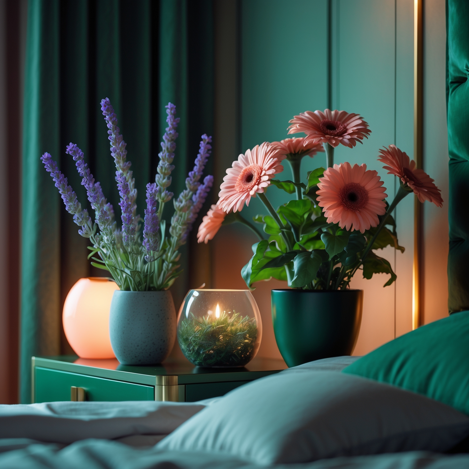 침실은 조용하고 차분한 느낌을 주는 공간이라, 지나치게 강한 향이나 화려한 꽃보다는 부드럽고 은은한 식물이 잘 어울려요. 앞서 언급한 산세베리아, 라벤더, 자스민 등이 여기에 딱 맞아요. 밤에도 산소를 배출하거나 향으로 릴렉스 효과를 주는 식물이 최적이에요.