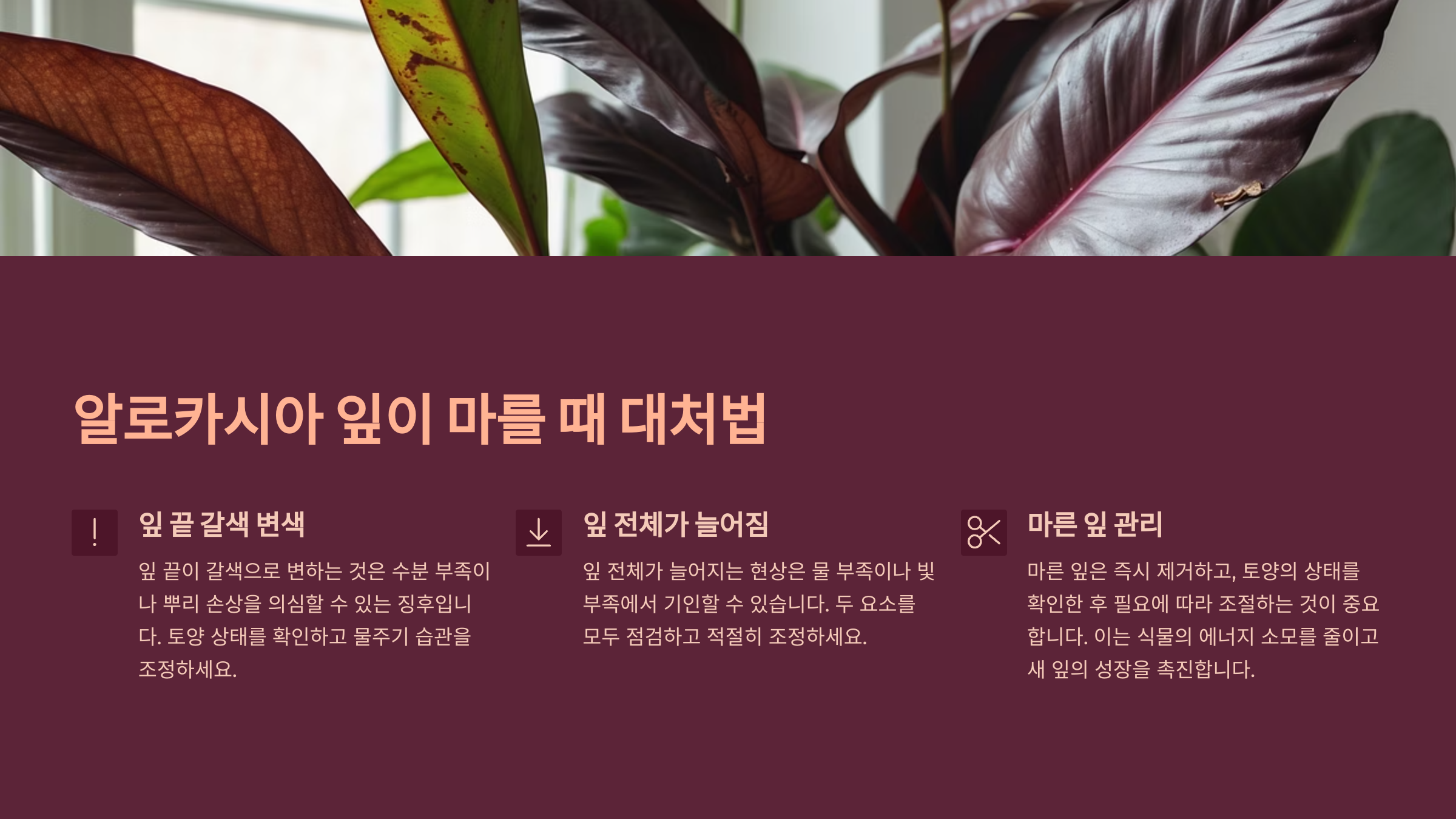 Q3. 알로카시아 잎 끝이 갈색으로 변했어요. 왜 그런가요?