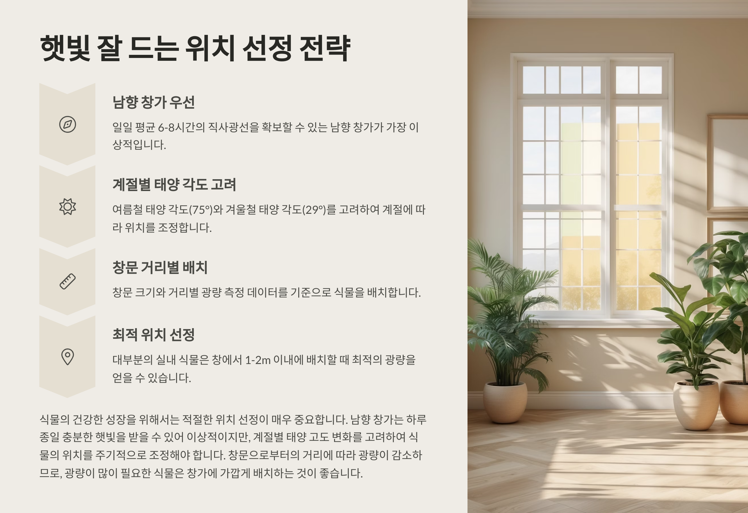햇빛은 계절에 따라 달라져요. 여름엔 위치가 좋아도 너무 강한 직사광선을 피해야 하고, 겨울엔 햇빛 각도가 낮아지기 때문에 식물 가까이로 햇빛이 덜 들어오게 돼요. 그래서 분기마다 위치를 한 번쯤 조정하는 게 효과적이에요.