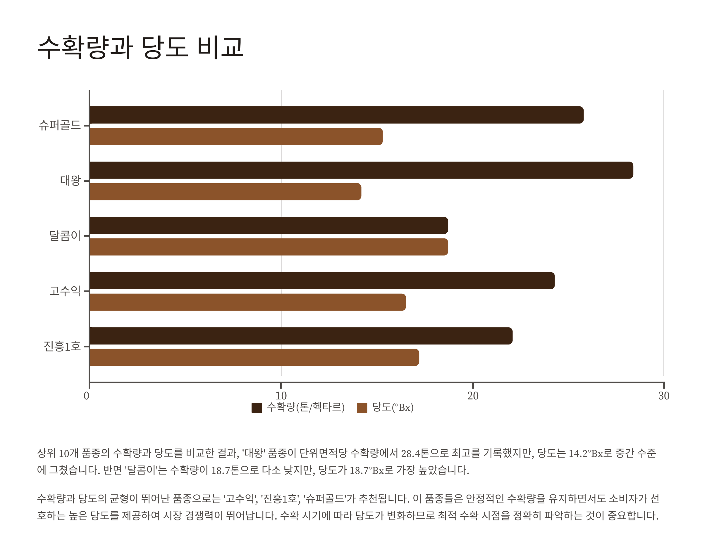 수확량과 당도 비교
