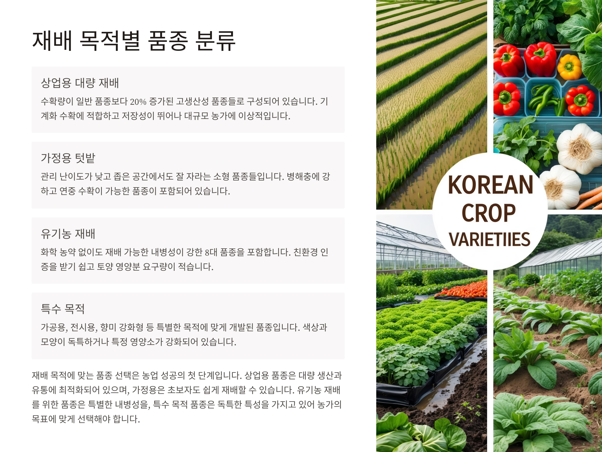 재배 목적별 품종 분류